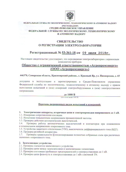 Электролаборатория до 1кВ